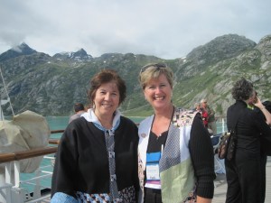 Campers to experience the incredible beauty of the glaceirs. In my first photo, cabin-mate (and Northcott designer) Jody Houghton is sporting a jacket made with her Girlfriends at Sea collection. I am wearing a vest made from her original Girlfriends fabric. I also made a vest with the Girlfriends at Sea fabrics – isn’t it fun? Girlfriends at Sea is shipping to stores this month, so in celebration, I am giving away a packet of Girlfriends at Sea fabrics. For your chance to win, simply post a comment on my blog about a trip that you and a quilting buddy went on, or would like to go on. Please post by midnight Thursday September 15.