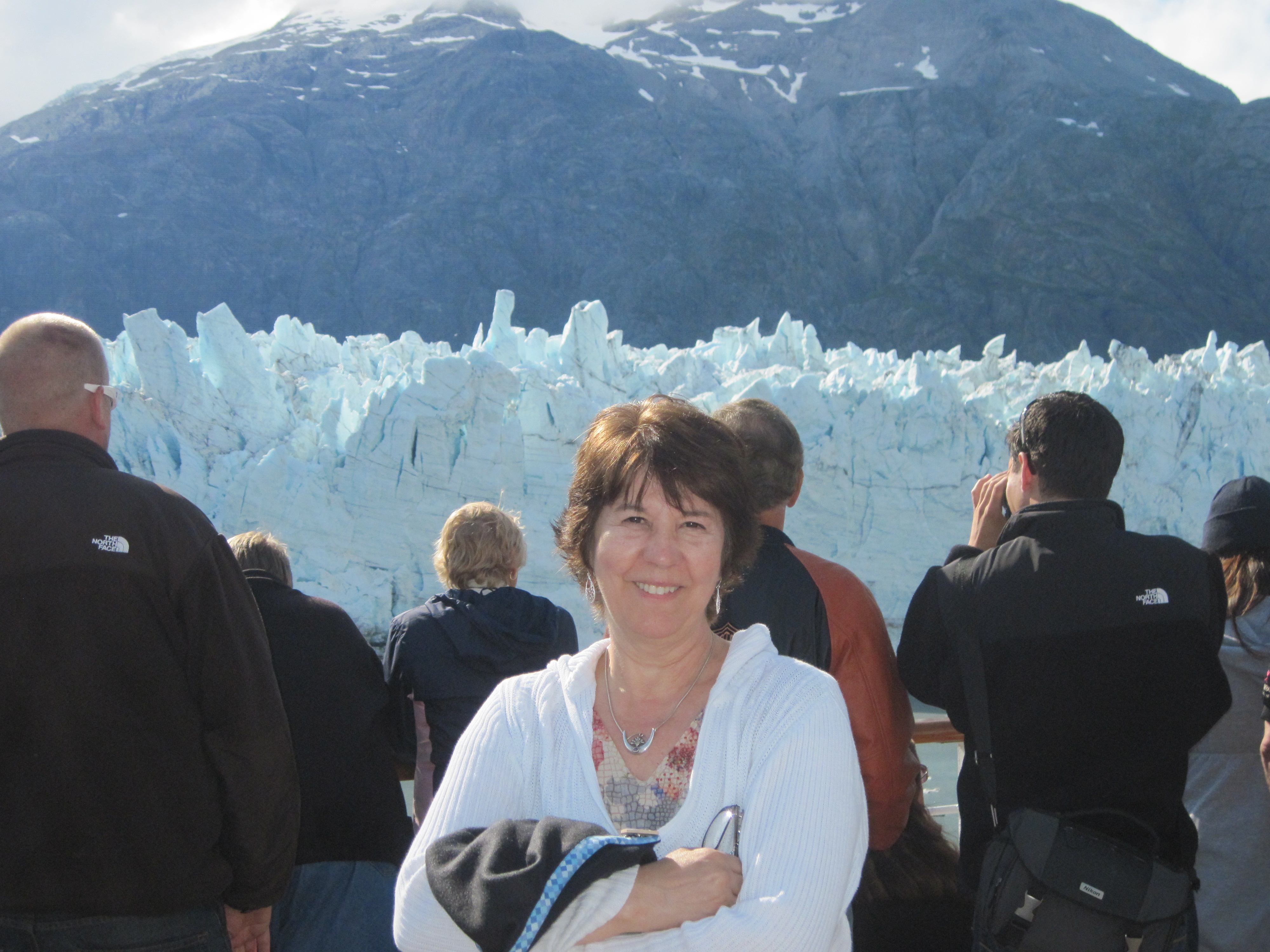 We had amazing weather – only the 3rd week of good weather this cruising season according to the cruiseship staff. When we pulled into Glacier Bay, it was foggy and overcast, but the skies soon cleared and we were blessed with sunshine while viewing the glaciers. I was so glad, because the scenery is spectacular, and I wanted our first-time Quilt