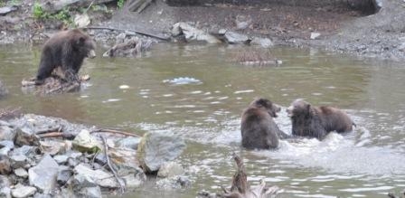 We also visited the studio of fellow teacher Lisa Moore and stopped at Fortress of the Bears, an “early retirement home” for nuisance bears, along the route. Kate took some amazing pictures – here’s one of them showing 3 sibling Coastal Brown Bear cubs. I have acquired a taste for Native art, and Lisa Moore has many terrific quilt patterns featuring the art of Aboriginals. I picked up Lisa’s totem wall-hanging pattern to make for my new ski chalet.