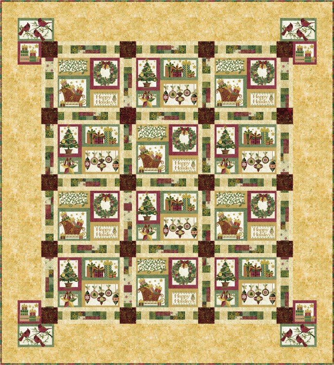 Quilter’s Newsletter magazine is working on their Best Christmas Quilts issue, coming out in August.  I played with Northcott’s new Stonehenge Christmas Traditions and came up with a super easy quilt that uses the panel and just a couple other fabrics.  The editors selected my design to be included!  Needless to say, I was delighted.  I try to use interesting fabrics such as panels in new and different ways, and I think this quilt is a good example of this.  Susanne had this queen-size quilt top put together in less than 2 days. Well, that’s it for now.  Susanne and I are finishing up a couple more quilts, and I will have pictures for you shortly.