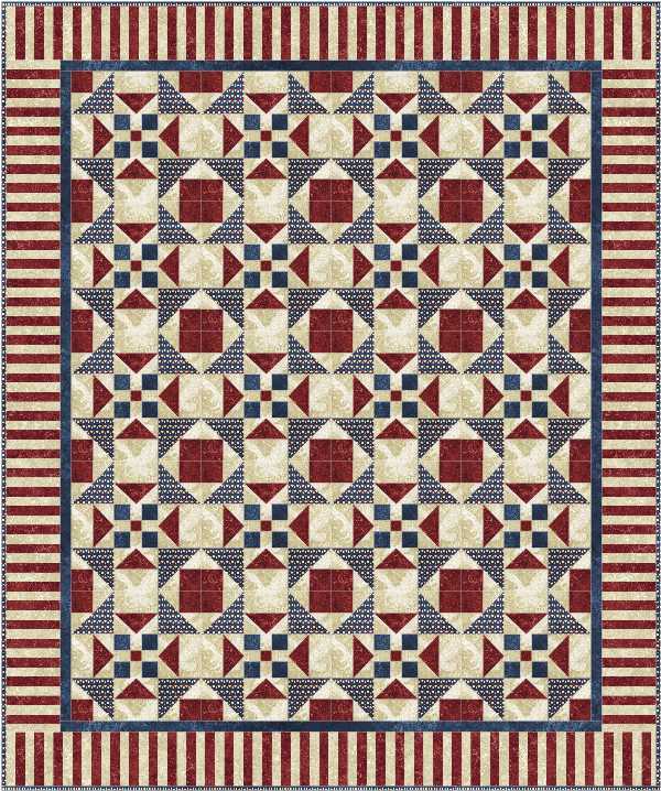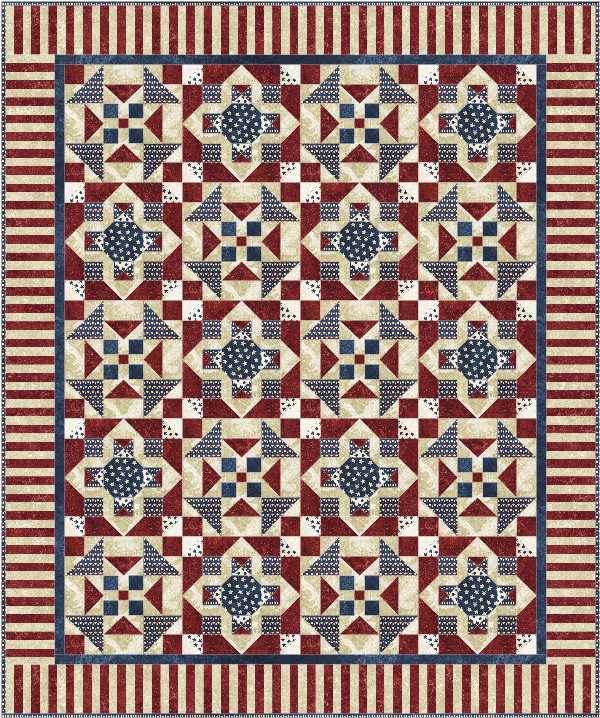 Now, being a quilter, and working with Northcott’s beautiful fabrics, I couldn’t help but wonder how some of these blocks would look in Northcott’s new Stonehenge Stars & Stripes fabrics.  So of course I had to play.  Here’s what I came up with:
