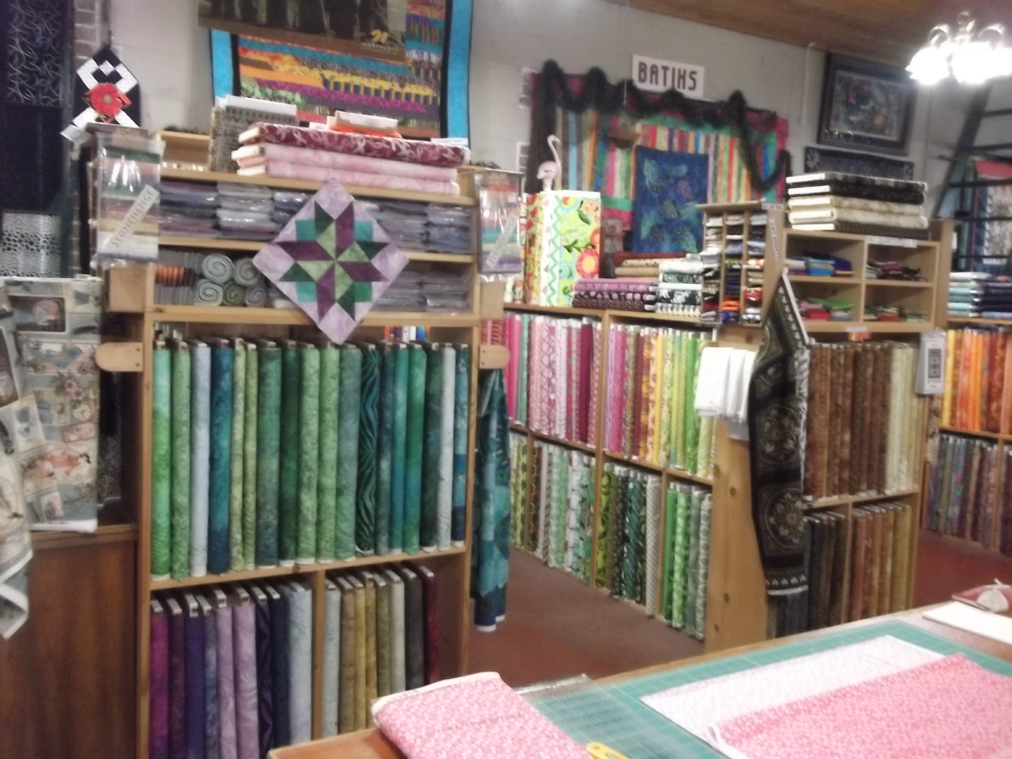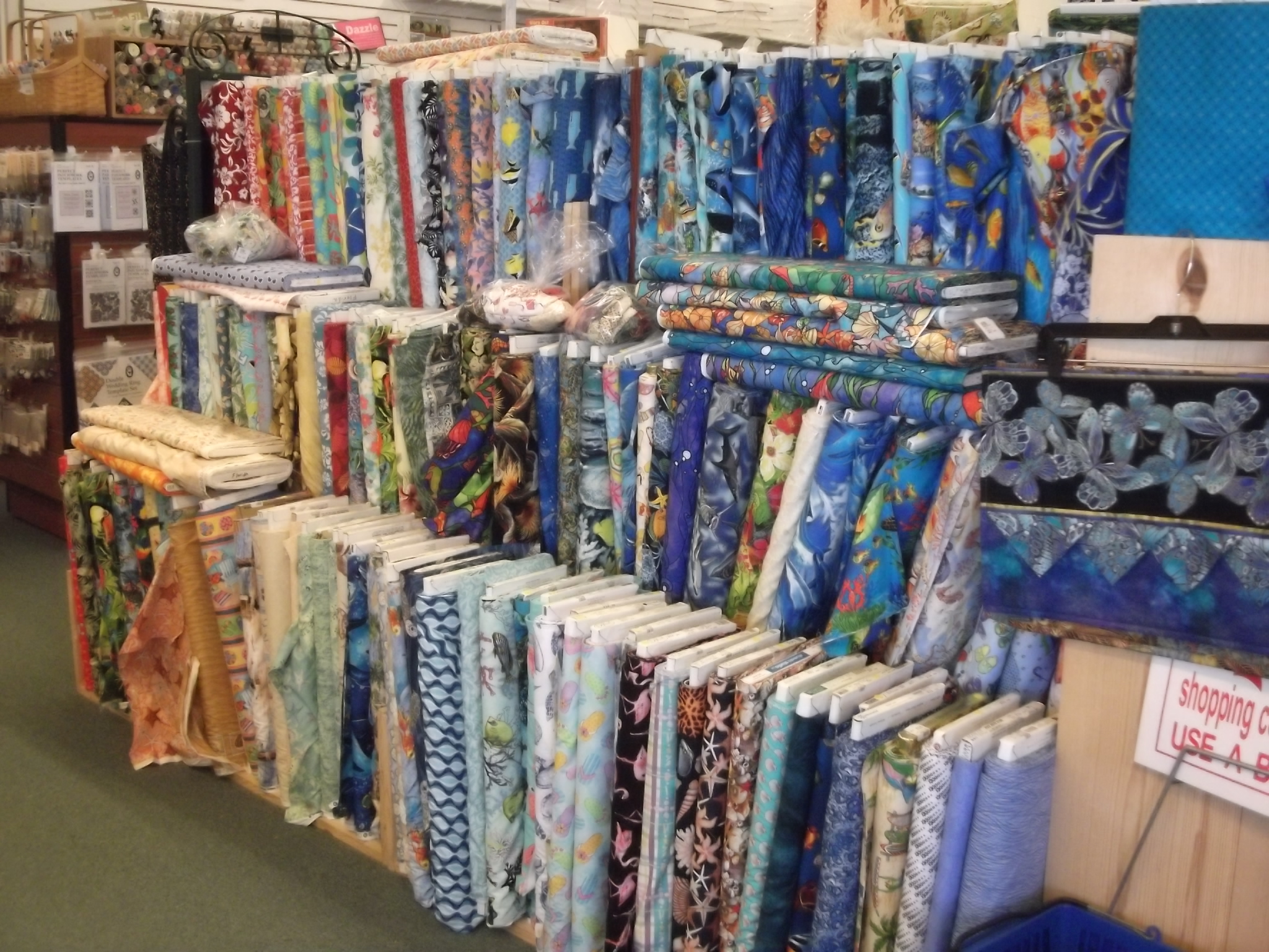 My last shop visit was to Theresa Bringardner’s The Quilt Place in Rockledge. Holy cow! If you can’t find it here, it doesn’t exist. Theresa has 12000 bolts of fabric, including entire shelves of Florida-themed fabrics, novelties of all types, and walls of batiks. The store was hopping! I even met some quilters from my own quilt guild while I was there.