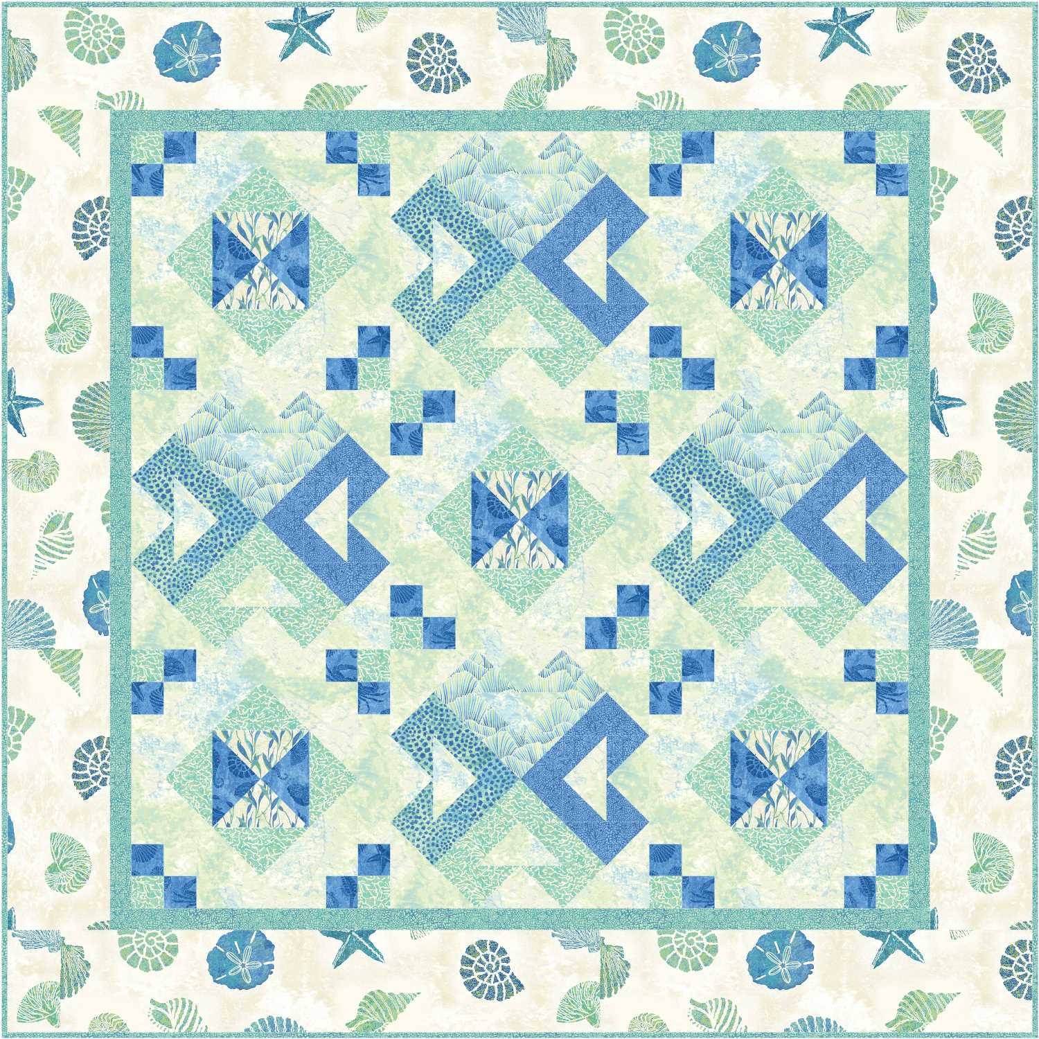 Northcott’s ad in the issue features the spa colorway of Serenity by Cheri Strole. I chose the alternate colorway (Caribbean – I am sitting on a beach in the Bahamas today!) to play with various blocks in this issue, and I would like you to tell me which block and quilt below are your favorite, for a chance to win a copy of 100 Blocks Volume 7.