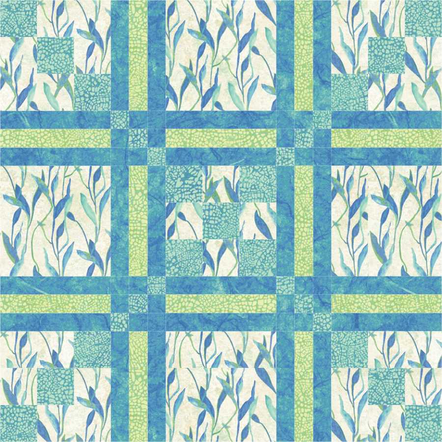 Chris Hoover of Whirligig Designs used Northcott’s Fragrance in her Tilt-a-Whirl block #669 and showcased the stripe beautifully. Since there wasn’t a stripe in Serenity, I used a directional vine print in its place in the center of the block.