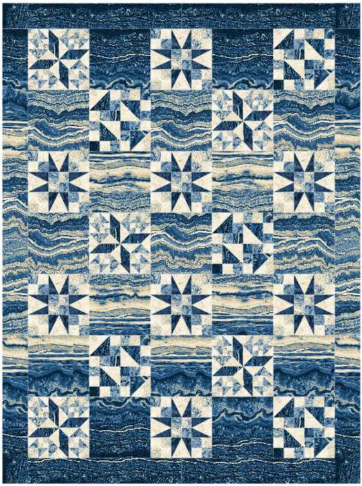 I recreated the 4 blocks above in Electric Quilt. Then I downloaded the fabric collection that is featured in Northcott’s advertisement in this issue (Stonehenge Earth Rhythms). It is so easy to download fabric collections into EQ7 from Northcott’s website – simply click on the “Download Fabrics for EQ” button. I know that the quilt that I create in EQ7 will look identical to the real thing, without cutting into any fabric. I can switch fabrics until I am happy with the final result, then start cutting.