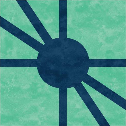 It is the first Tuesday of the month and that means another round of Quilt Block Mania.  I must admit that I was somewhat apprehensive about the theme for this month – bugs – since I am not a fan of bugs of any kind.  However, the color palette chosen by organizer Carolina of Always Expect Moore drew me in: lovely iridescent teals, greens and deep navy.  The trick for this piecing gal was trying to create a block that was not applique based.  My modern side stepped in and created a mostly-pieced block with a hint of applique – I hope you like it!  Here is my Arachnid block (you can find the pattern here).