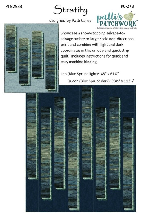 I also did a simple but very effective design taking full advantage of the selvage-to-selvage ombre print in Bliss – this one is called Stratify and includes 2 size options (find it here).