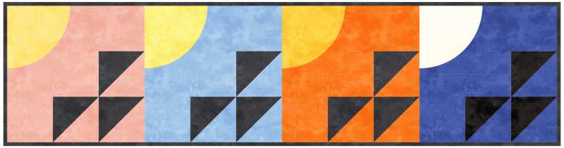 My 4-block runner depicting sunrise, mid-day, sunset and midnight