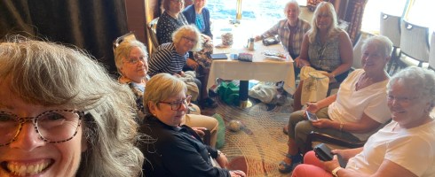 Both of my local quilt guilds have special events for December, as do many other guilds. We have a classic potluck – bring your favorite sweet or savory dish to share with your quilting circle of friends, for they are another “family” in our lives. Quilting/stitching friends are the best, don’t you agree? On a recent extended cruise, I met up regularly with a terrific group of creatives as we stitched our way through the sea days of our cruise.