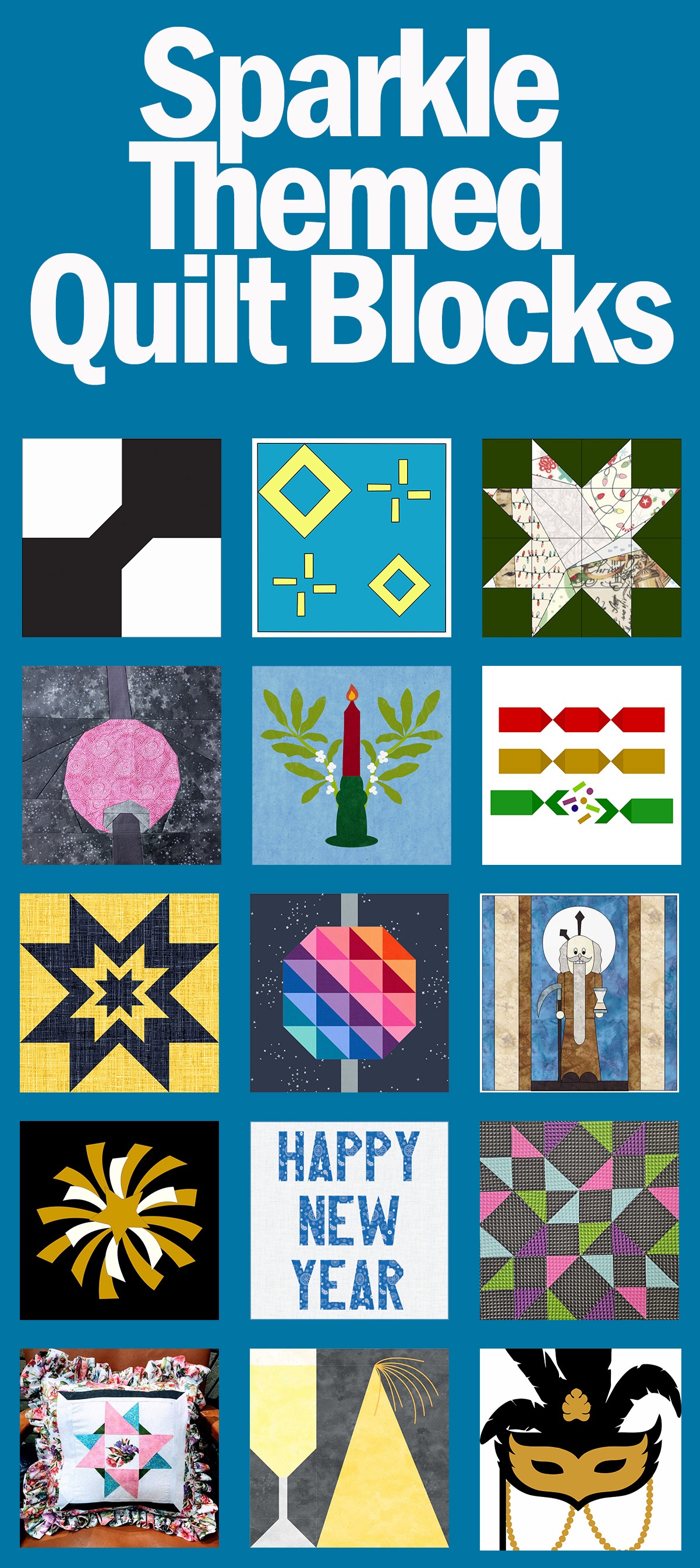 The theme for this month’s Quilt Block Mania blog tour is New Years Sparkle, and I considered capturing this icon in a quilt block but – alas – 2 other designers beat me to it (their blocks are great!). So, I put on my thinking cap and came up with a cap (ha-ha) and a flute of champagne (of course!) for my Cheers to New Years block. You can find the pattern here.