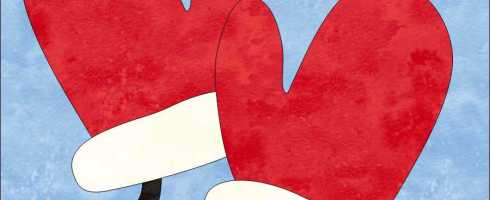 As it happens, the theme for this month’s Quilt Block Mania is Snow, so I immediately thought of the hand-knit mittens my mom made.