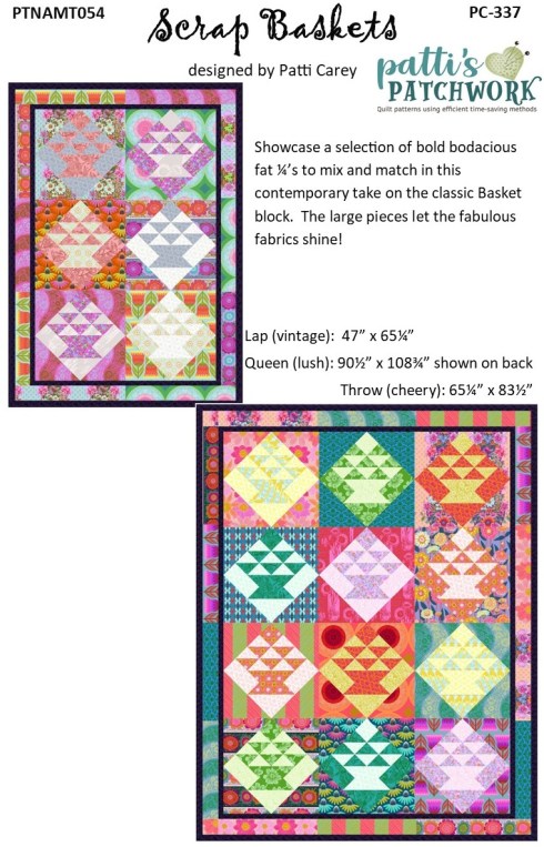 PC336 Tints & Tones and PC337 Scrap Baskets are fat ¼ friendly patterns, perfect for using up some treasures hidden in your stash. I made mine with the Indelible pastel fat 1/4’s and Perennial Border fat 1/4’s.