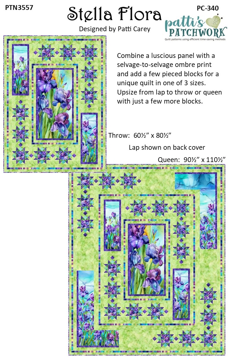 The lovely panel and ombre print in Northcott’s Infatuation shine in PC340 Stella Flora – let the large focus fabrics do the work in this stunning quilt that brings Spring into your home.